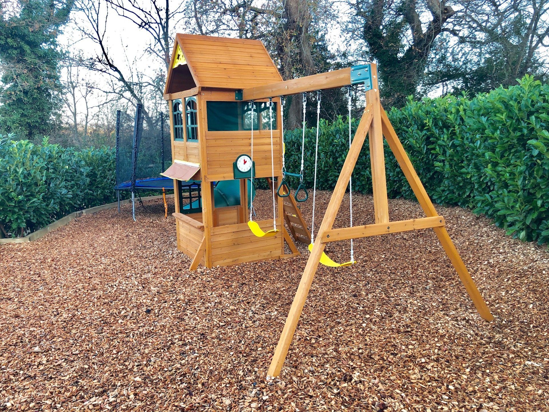- Electric storage heaters and electricity included, phone for incoming calls and emergency outgoing calls, travel cot and high chair available on request (but please bring own cot bedding), towels included; dogs welcome, fully enclosed garden with patio area, trampoline and private parking for up to four cars.